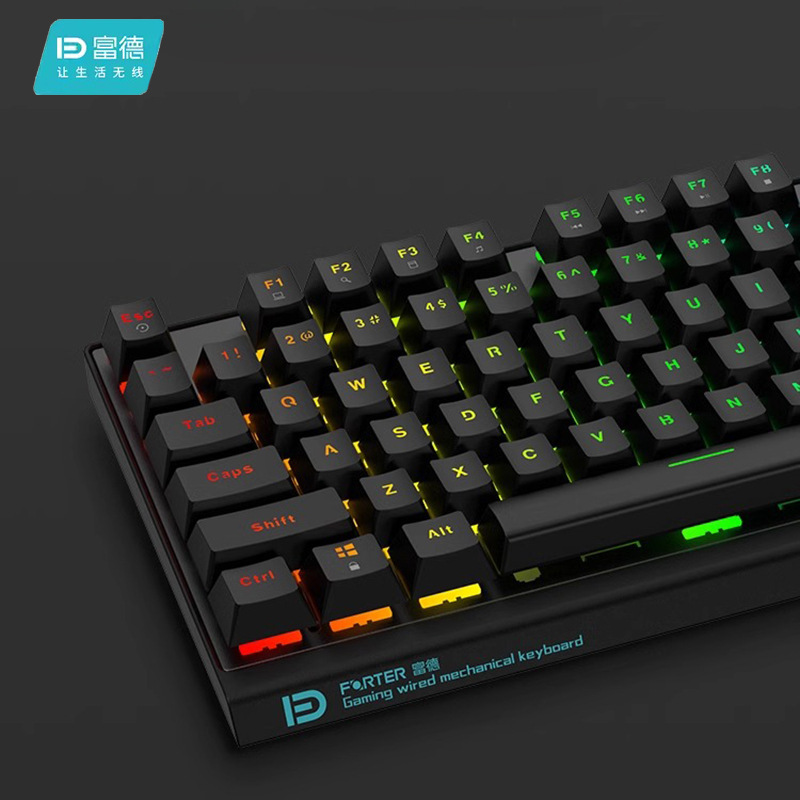 富德机械键盘有线104键USB黑轴青轴外接电竞游戏台式电脑有线办公