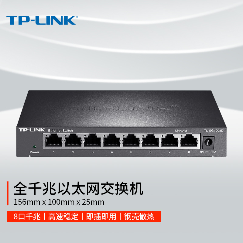 TP-LINK TL-SG1008D 8口千兆交换机 千兆钢壳1000M网络监控交换机