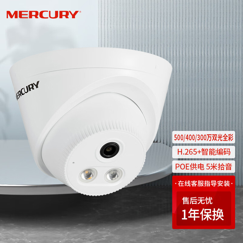 水星300万400万500万高清音频半球网络摄像头POE监控机 MIPC432PW