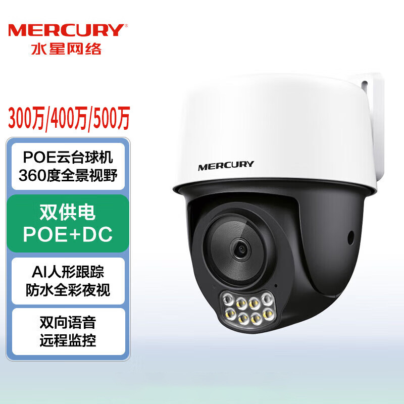 水星300万400万500万室外POE全彩有线摄像头MIPC428PW云台360旋转