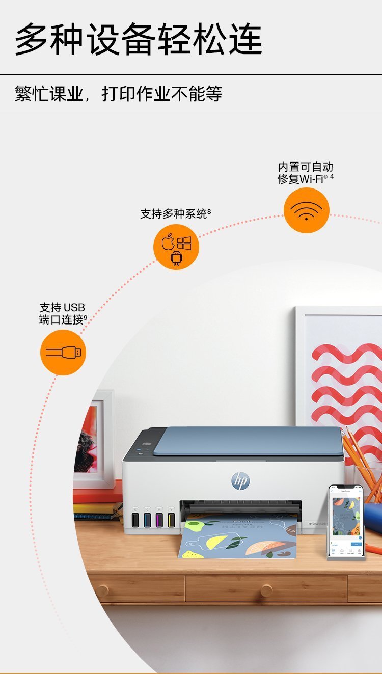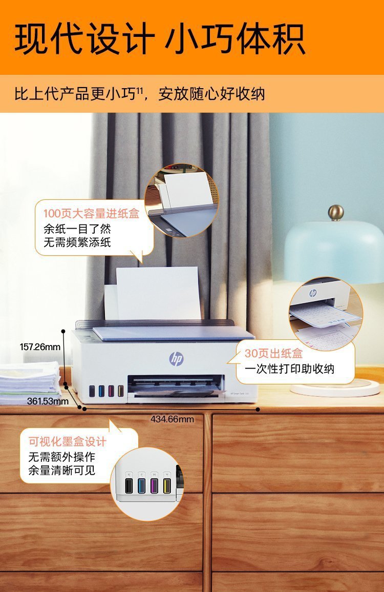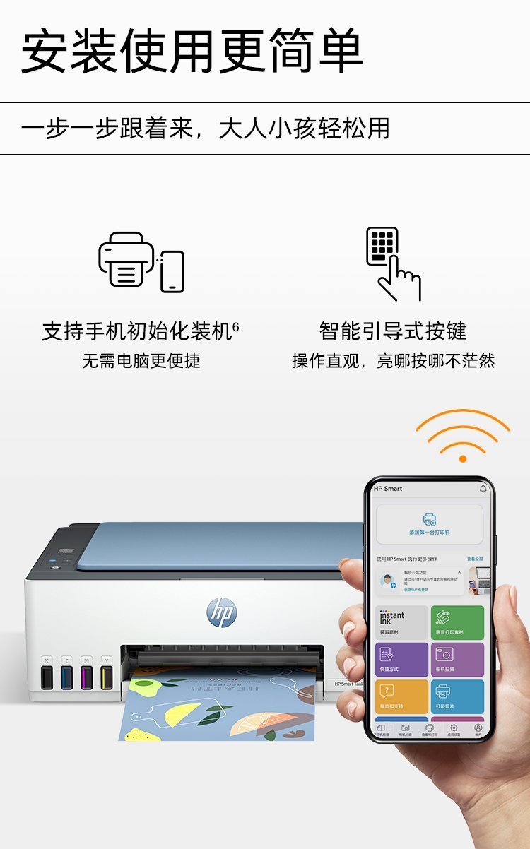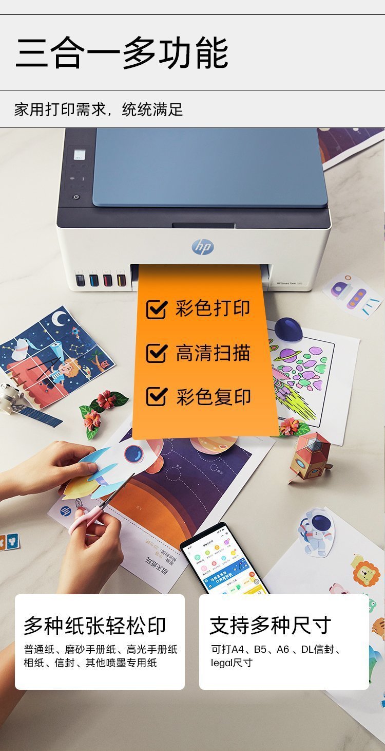 惠普Tank583扫描无线A4彩色连供加墨办公学生家用打印复印一体机