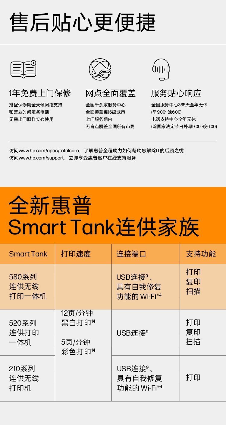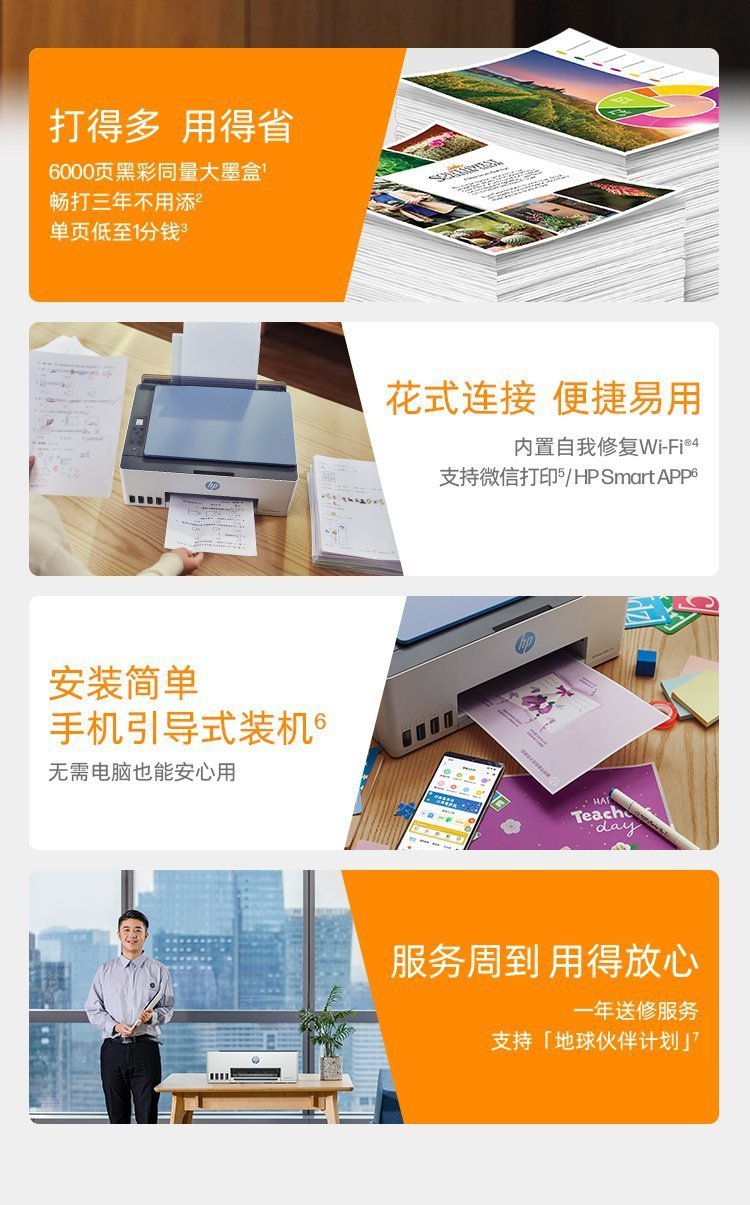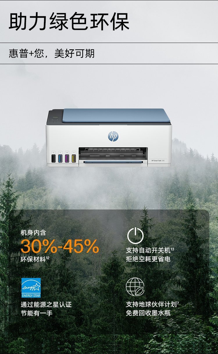 惠普Tank583扫描无线A4彩色连供加墨办公学生家用打印复印一体机