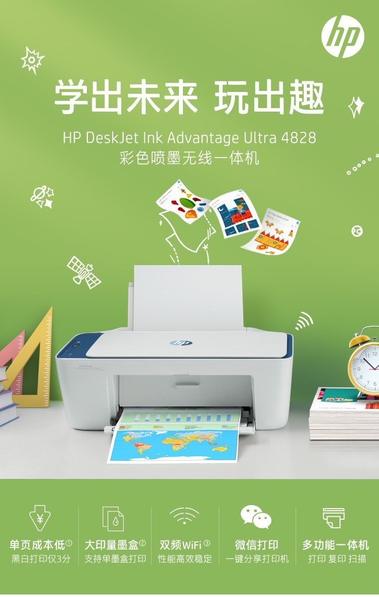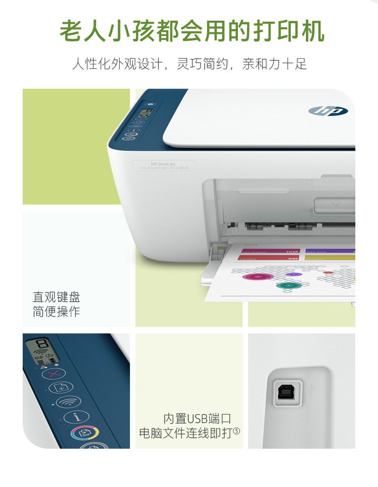 惠普4828扫描手机无线A4彩色喷墨小型办公学生家用打印复印一体机