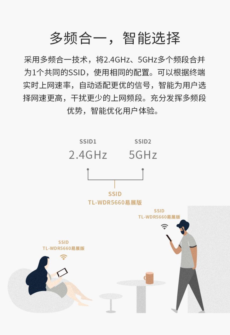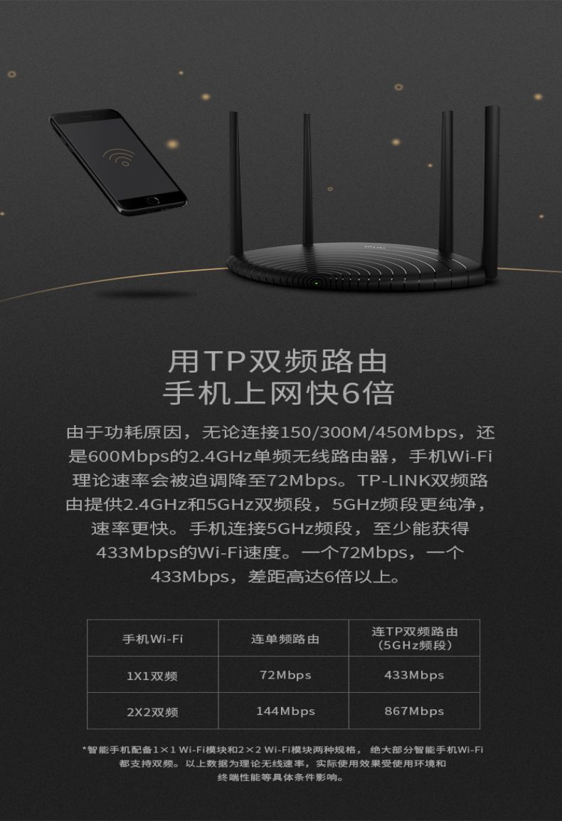 TP-LINK 1200M双频无线路由器5G家用高速穿墙TL-WDR5660易展版