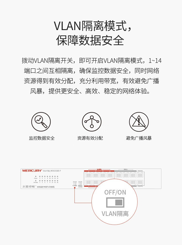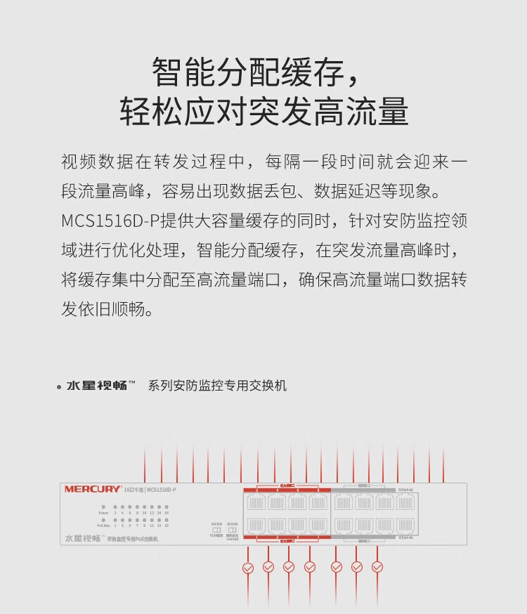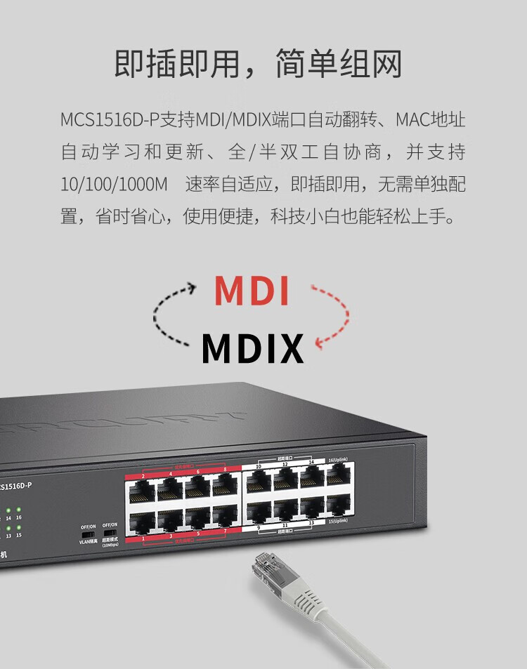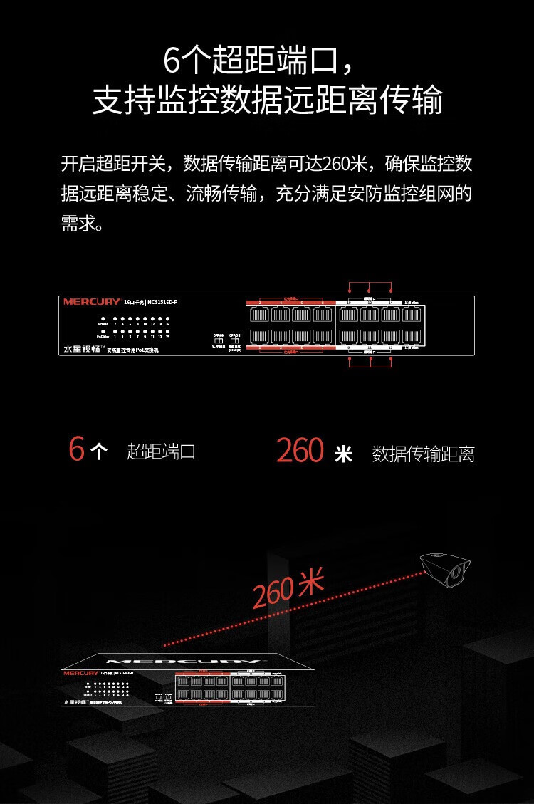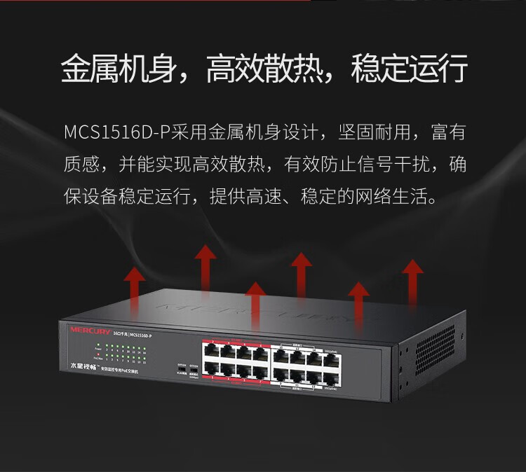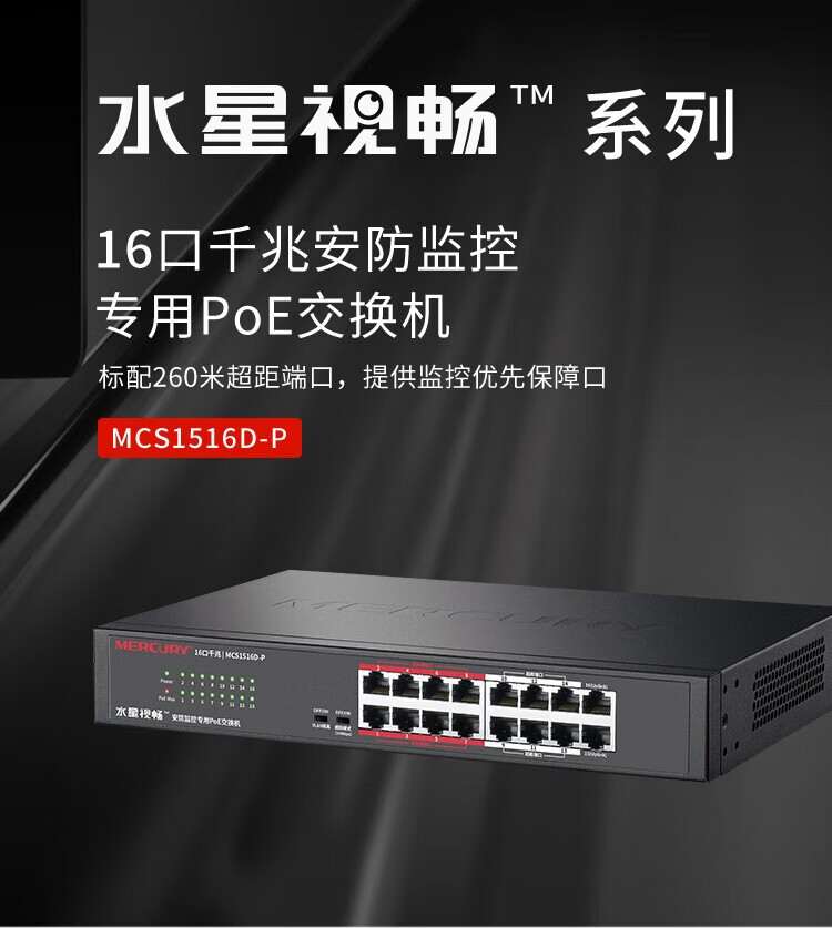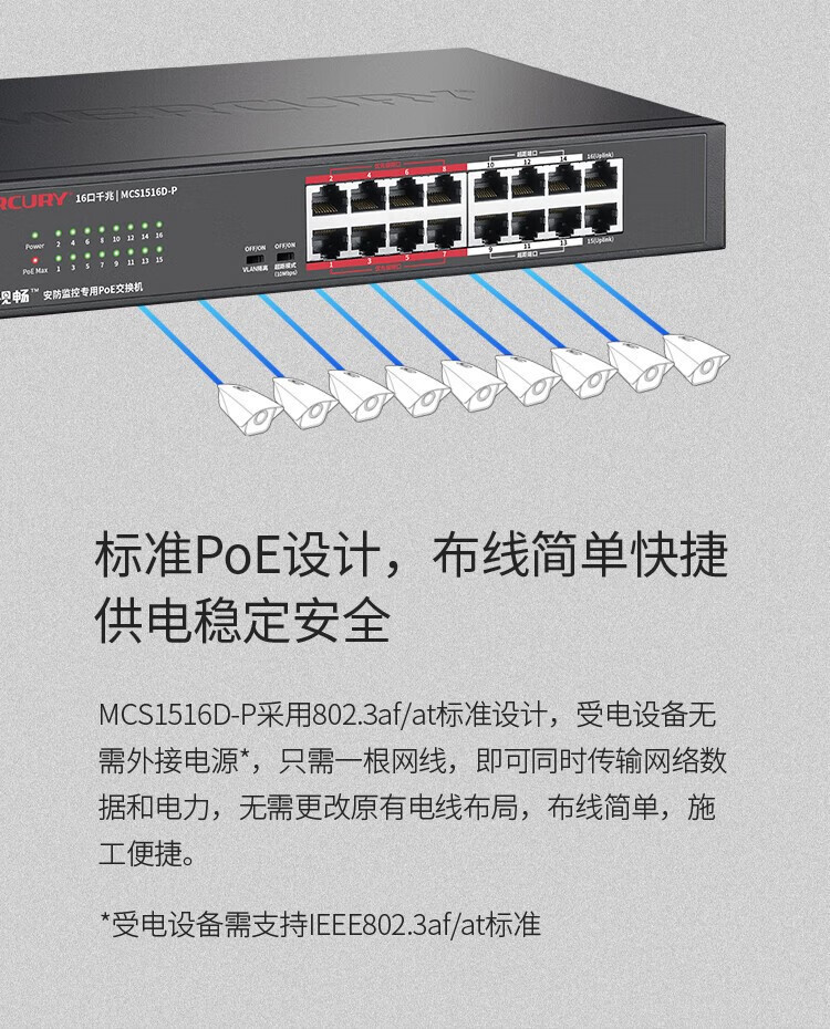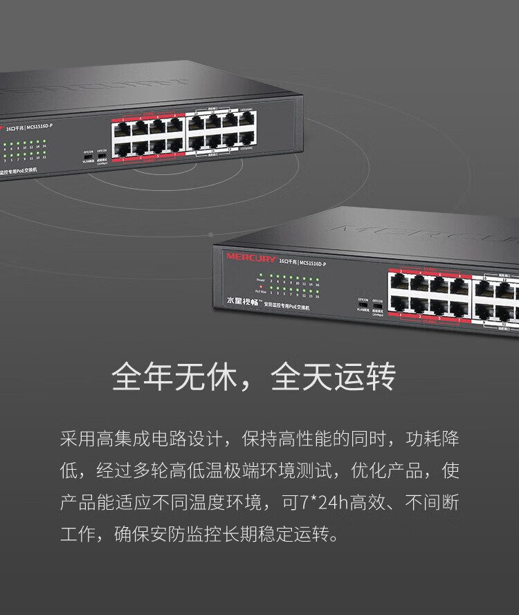 MERCURY水星MCS1516D-P千兆16口安防监控专用PoE交换机VLAN上机架