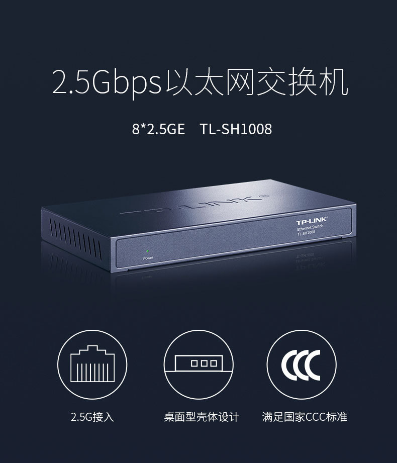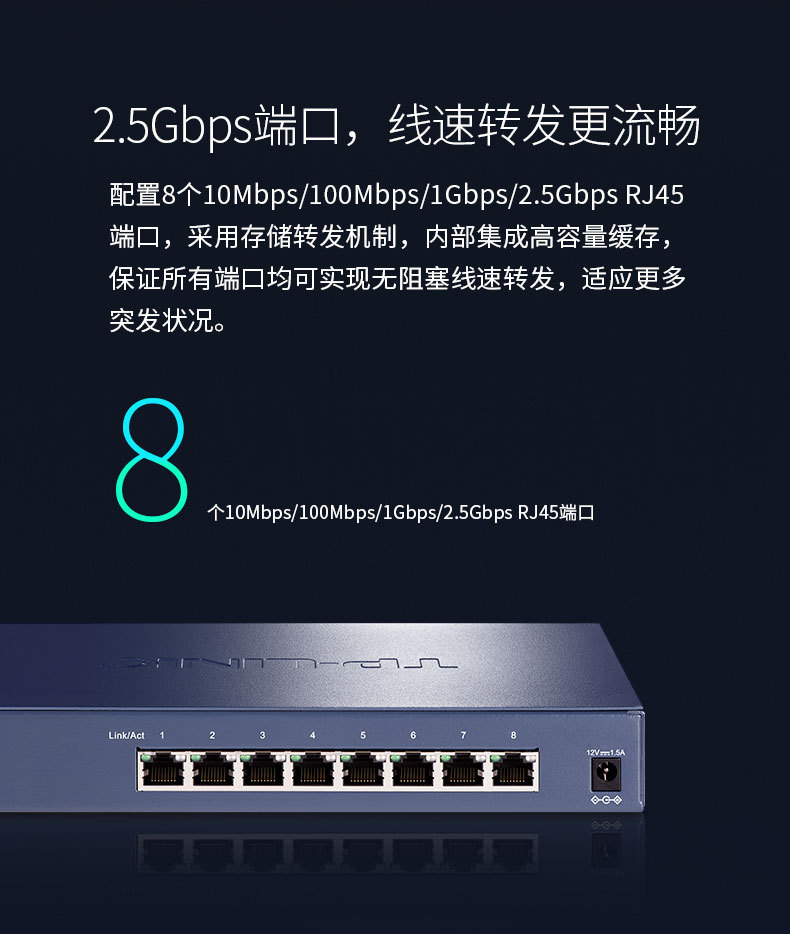 TP-LINK 8口企业级2.5G交换器千兆家用网络分线器集线器TL-SH1008