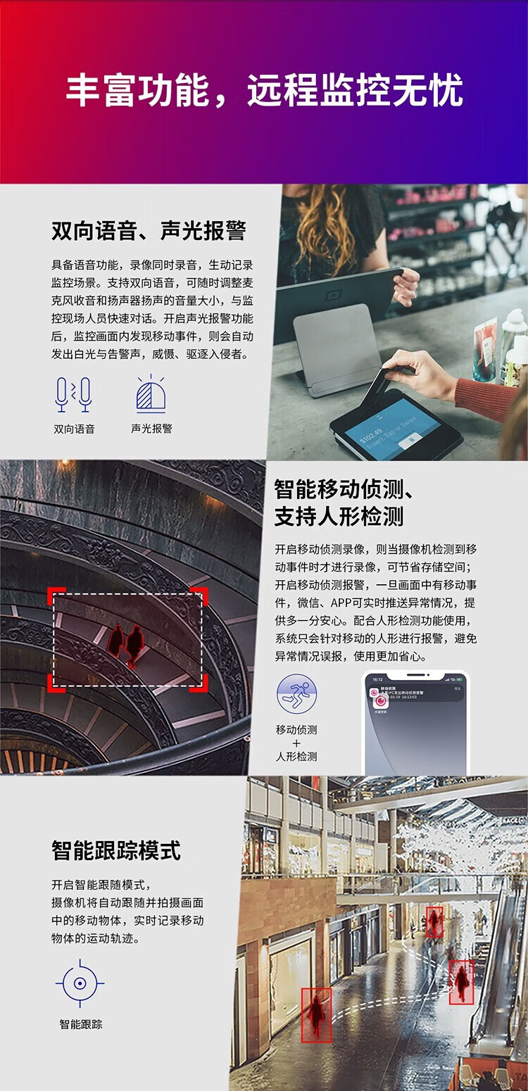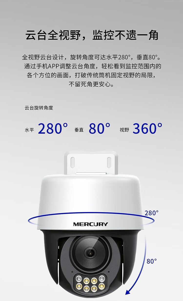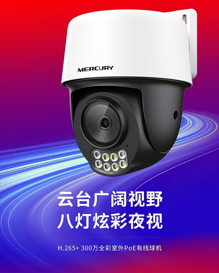 水星300万400万500万室外POE全彩有线摄像头MIPC428PW云台360旋转