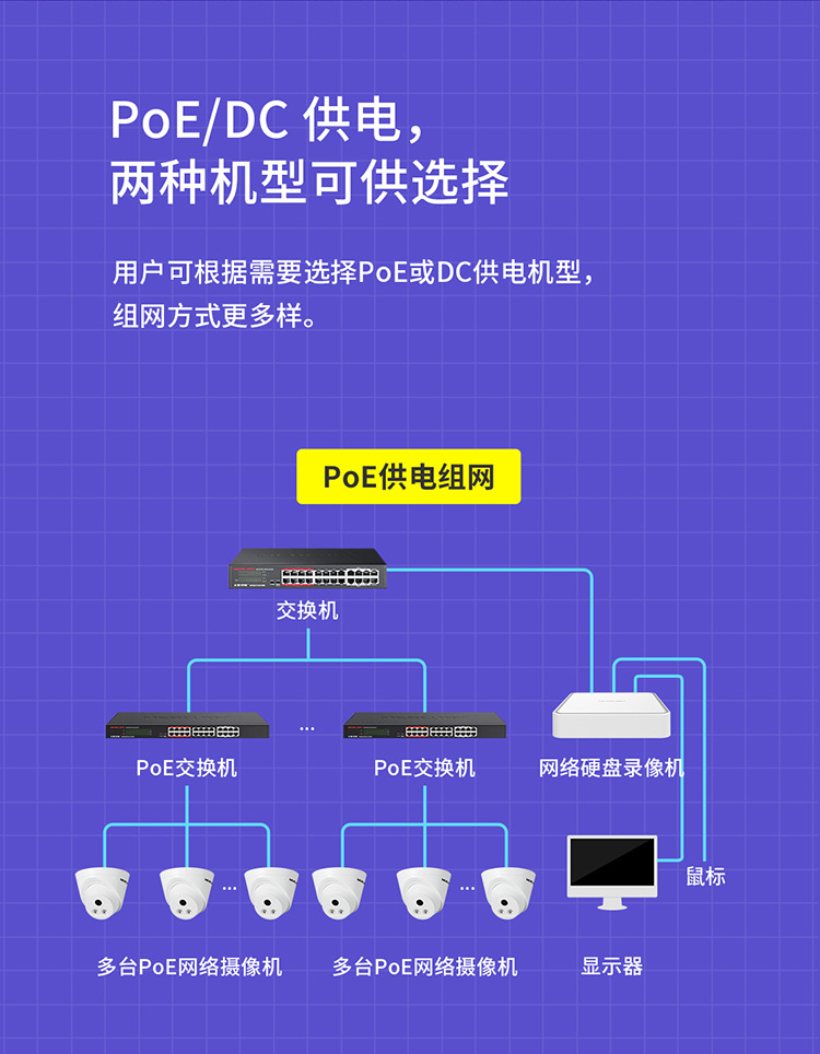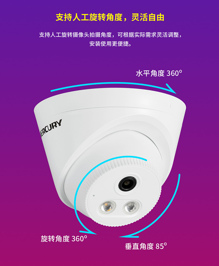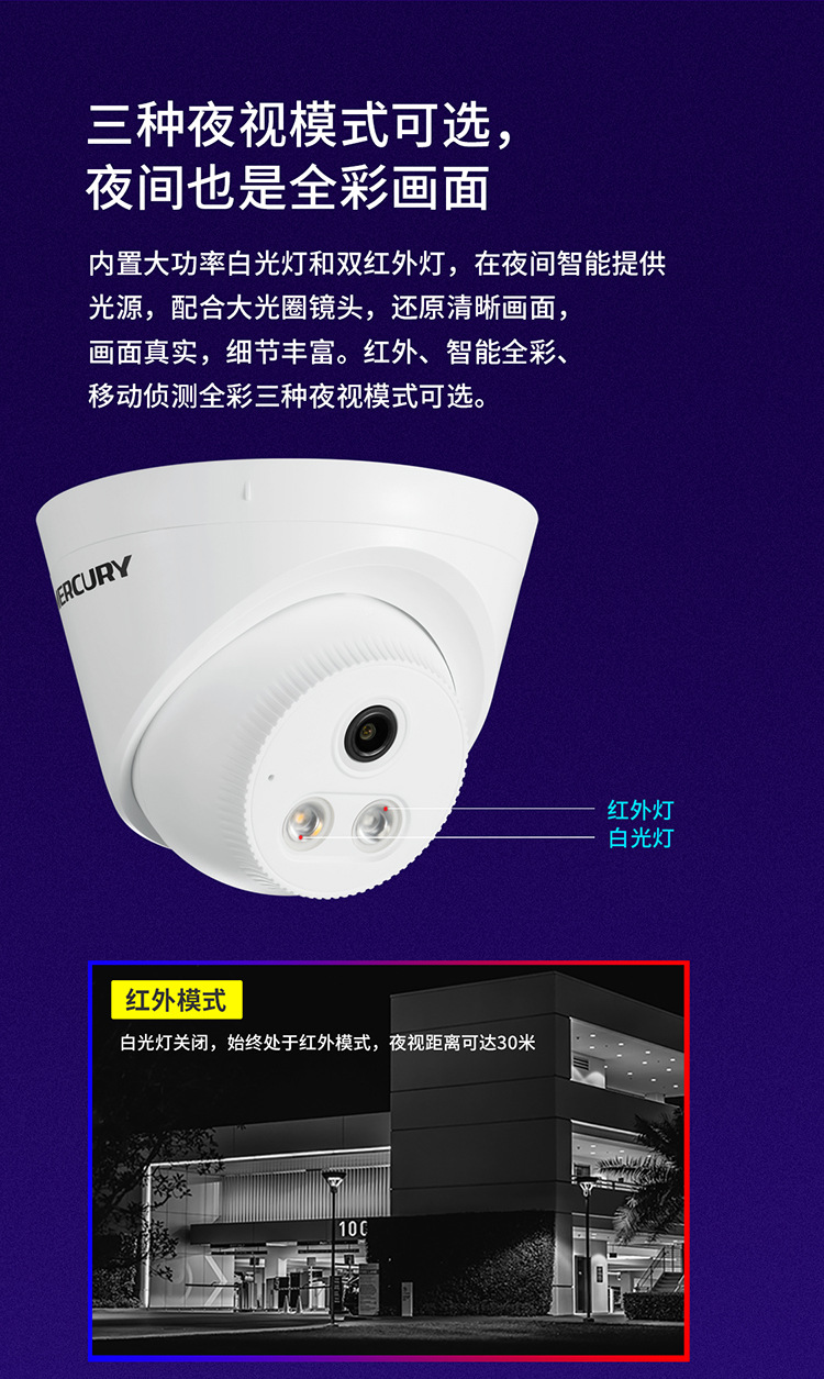 水星300万400万500万高清音频半球网络摄像头POE监控机 MIPC432PW