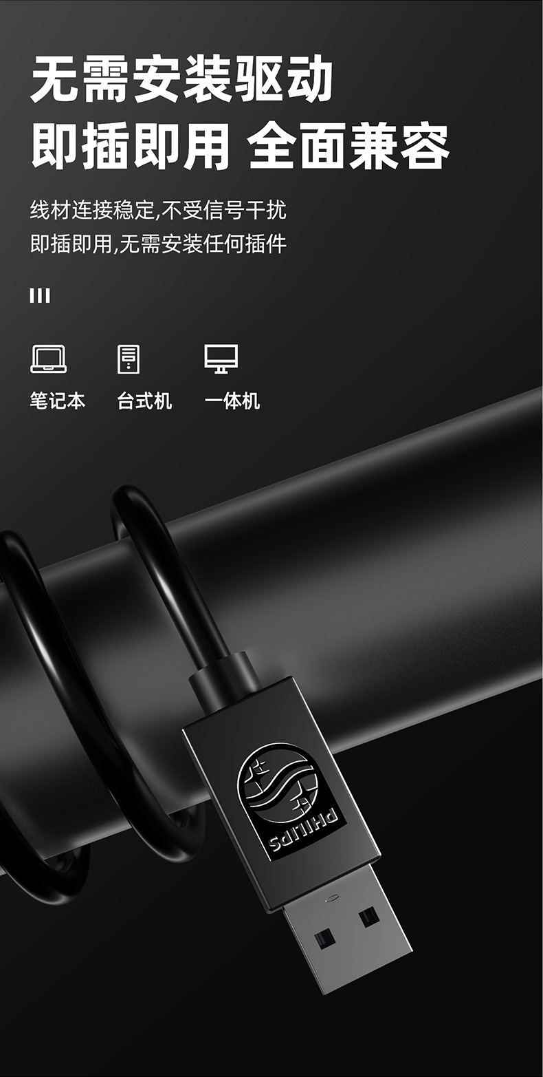 飞利浦K234笔记本台式机电脑usb有线键盘 家用游戏办公商务 键盘