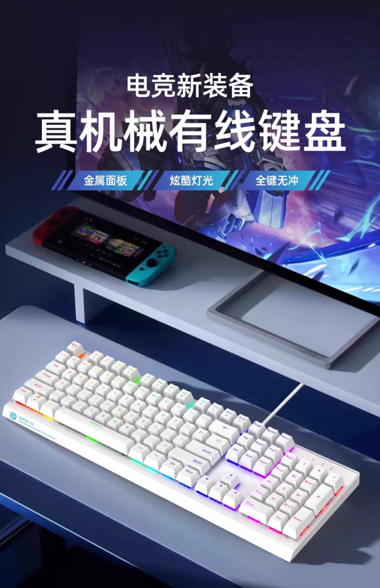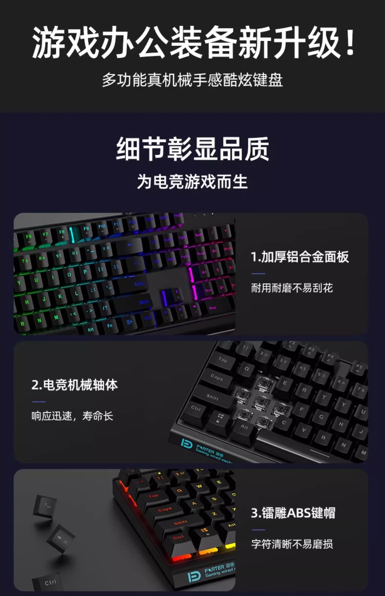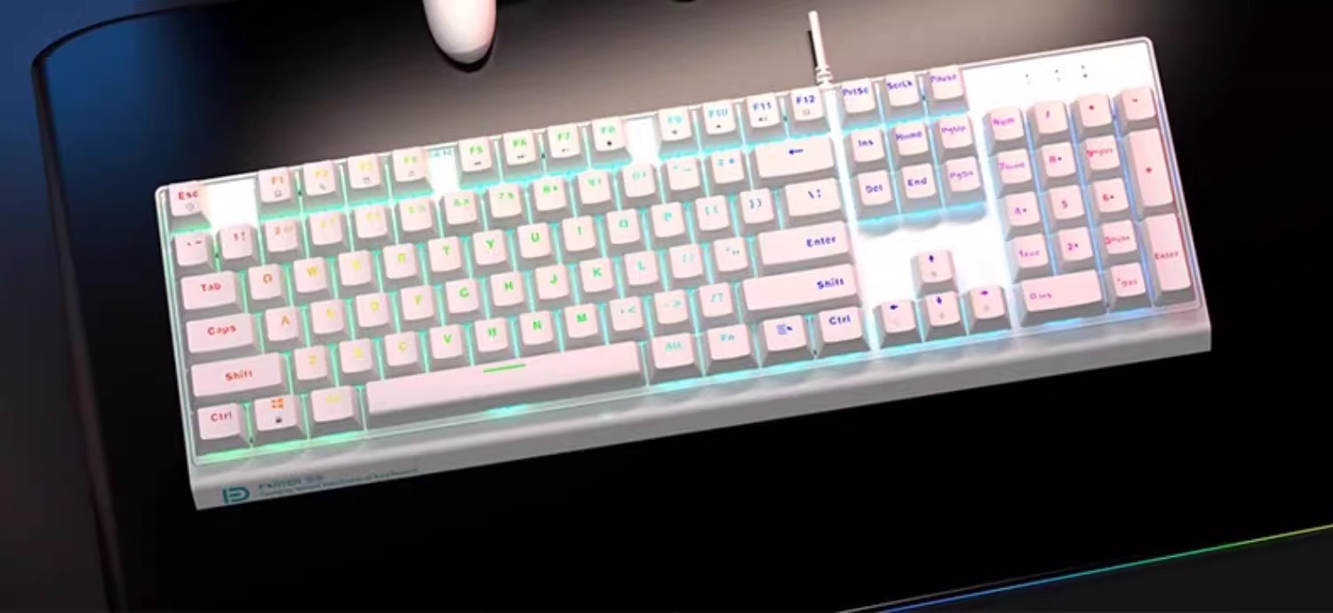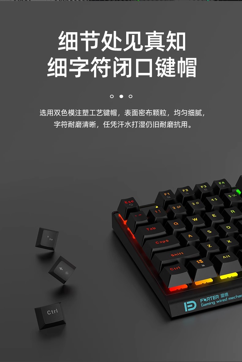 富德机械键盘有线104键USB黑轴青轴外接电竞游戏台式电脑有线办公