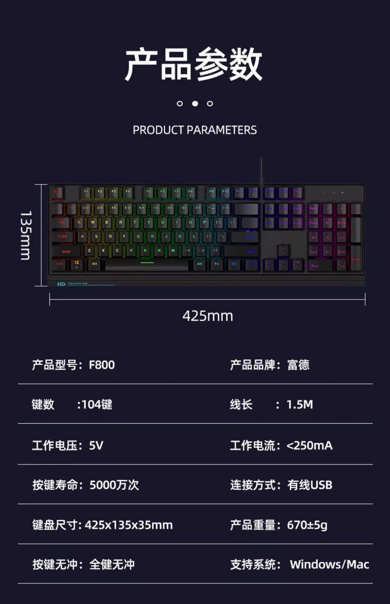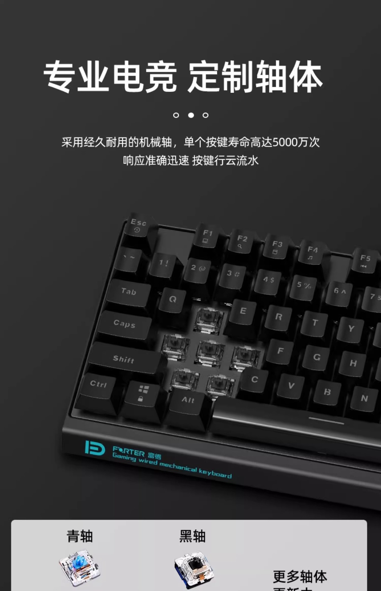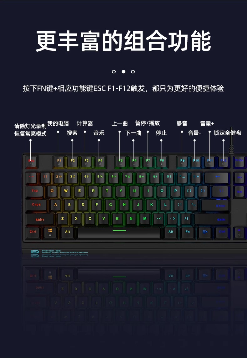 富德机械键盘有线104键USB黑轴青轴外接电竞游戏台式电脑有线办公