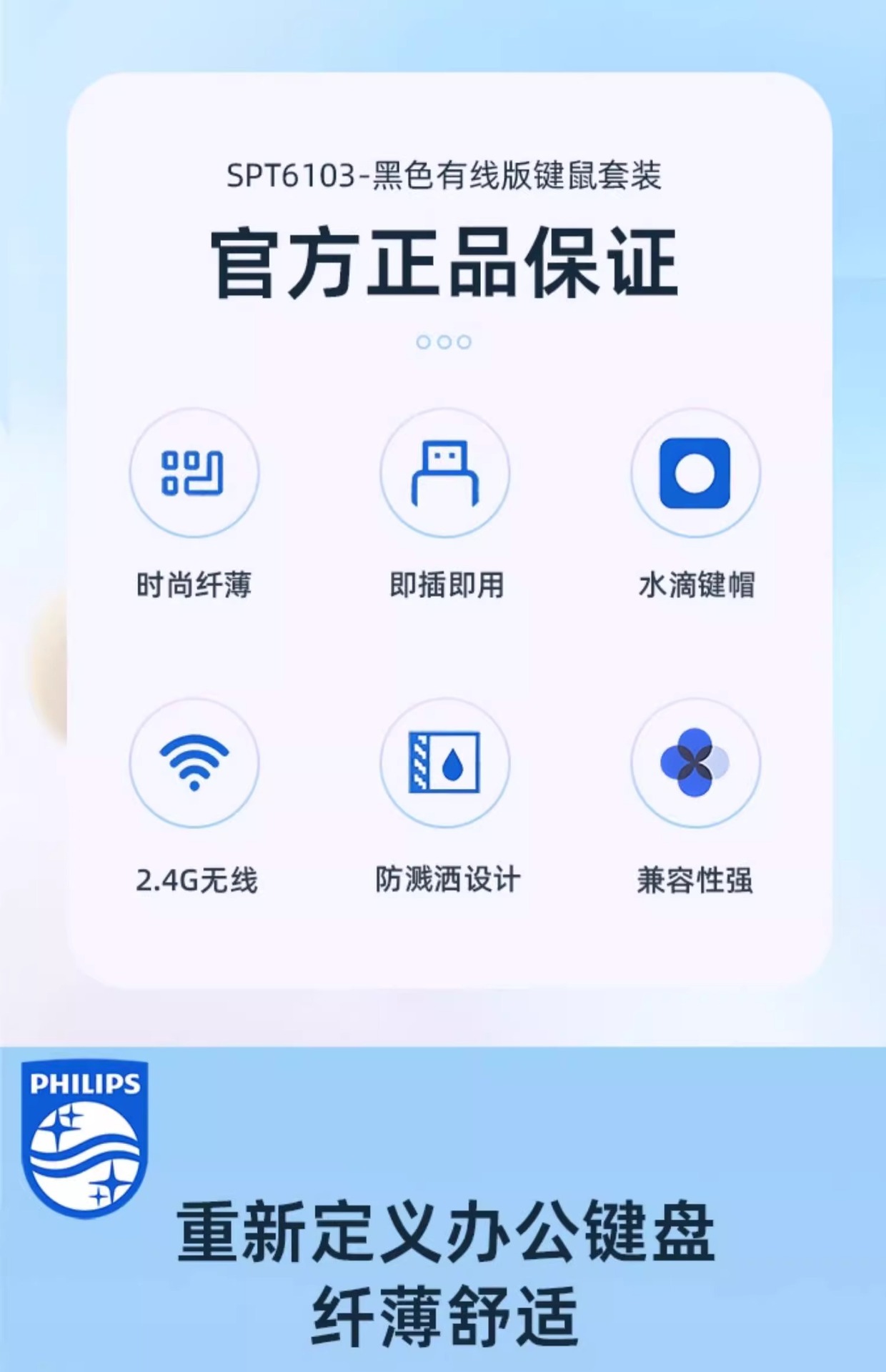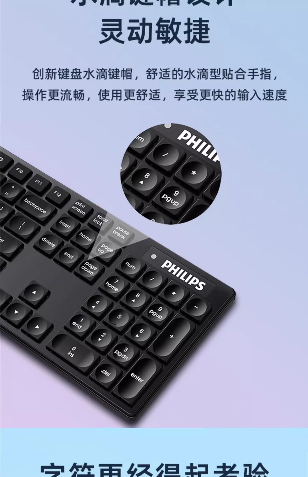 飞利浦spk6103无线蓝牙键盘 麻将键盘套件游戏电竞静音笔记本电脑