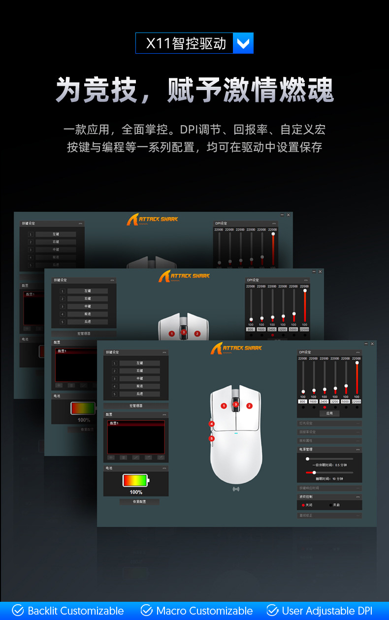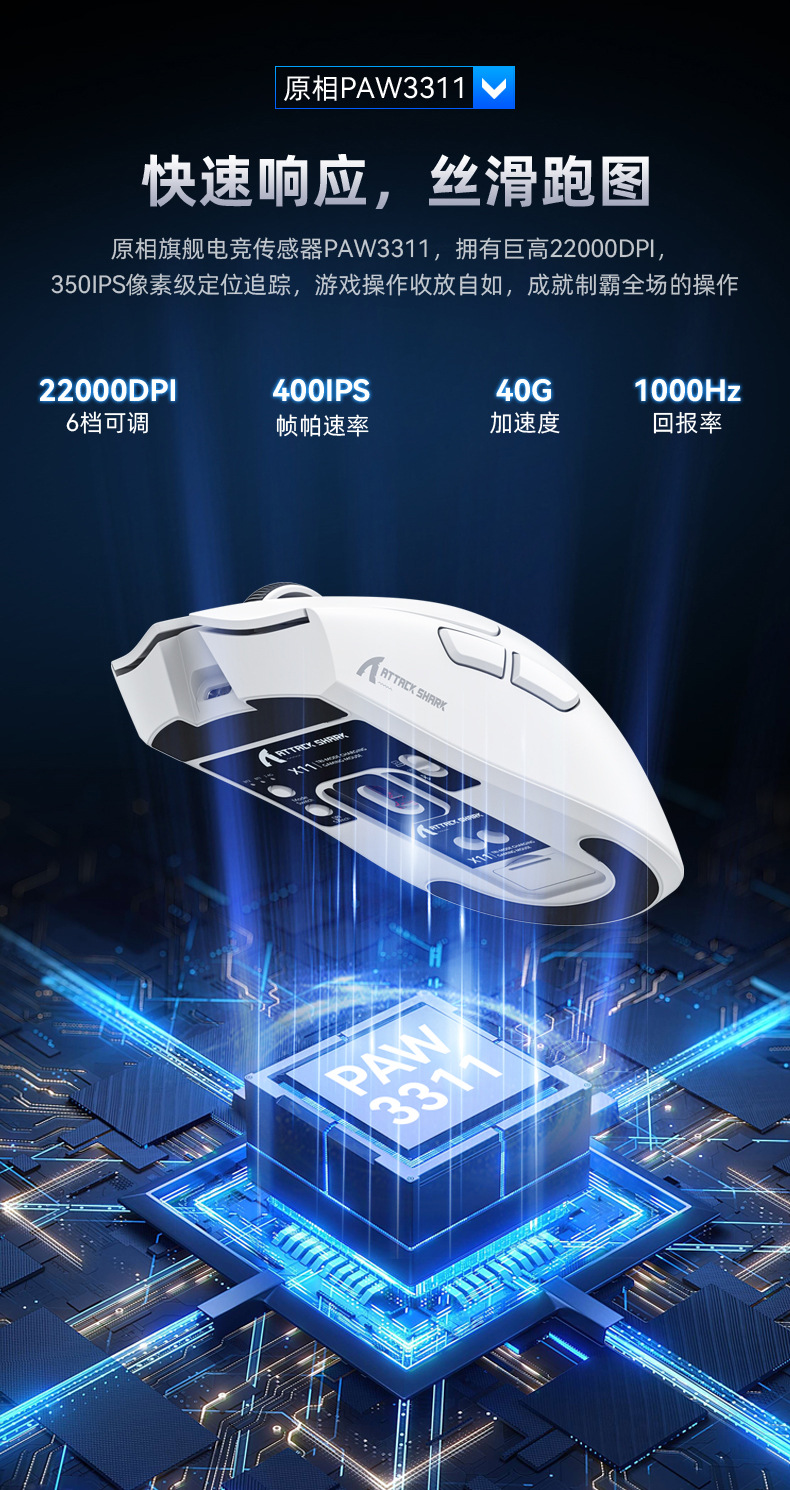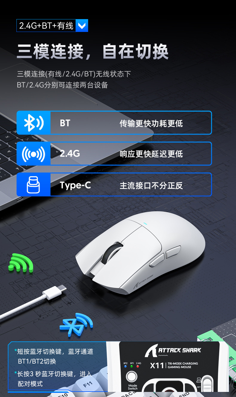 现货Attack Shark/攻击鲨X11 轻量化三模无线鼠标PAW3311充