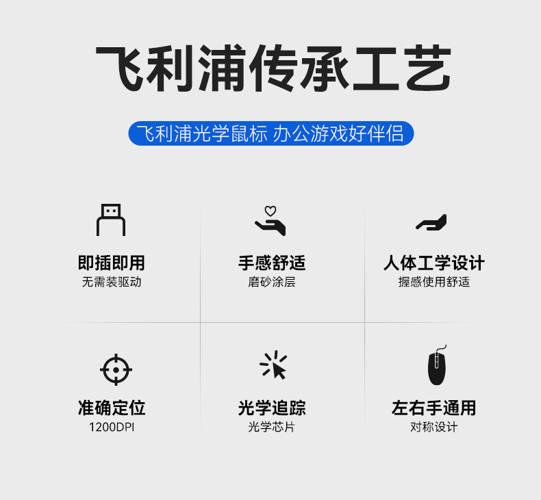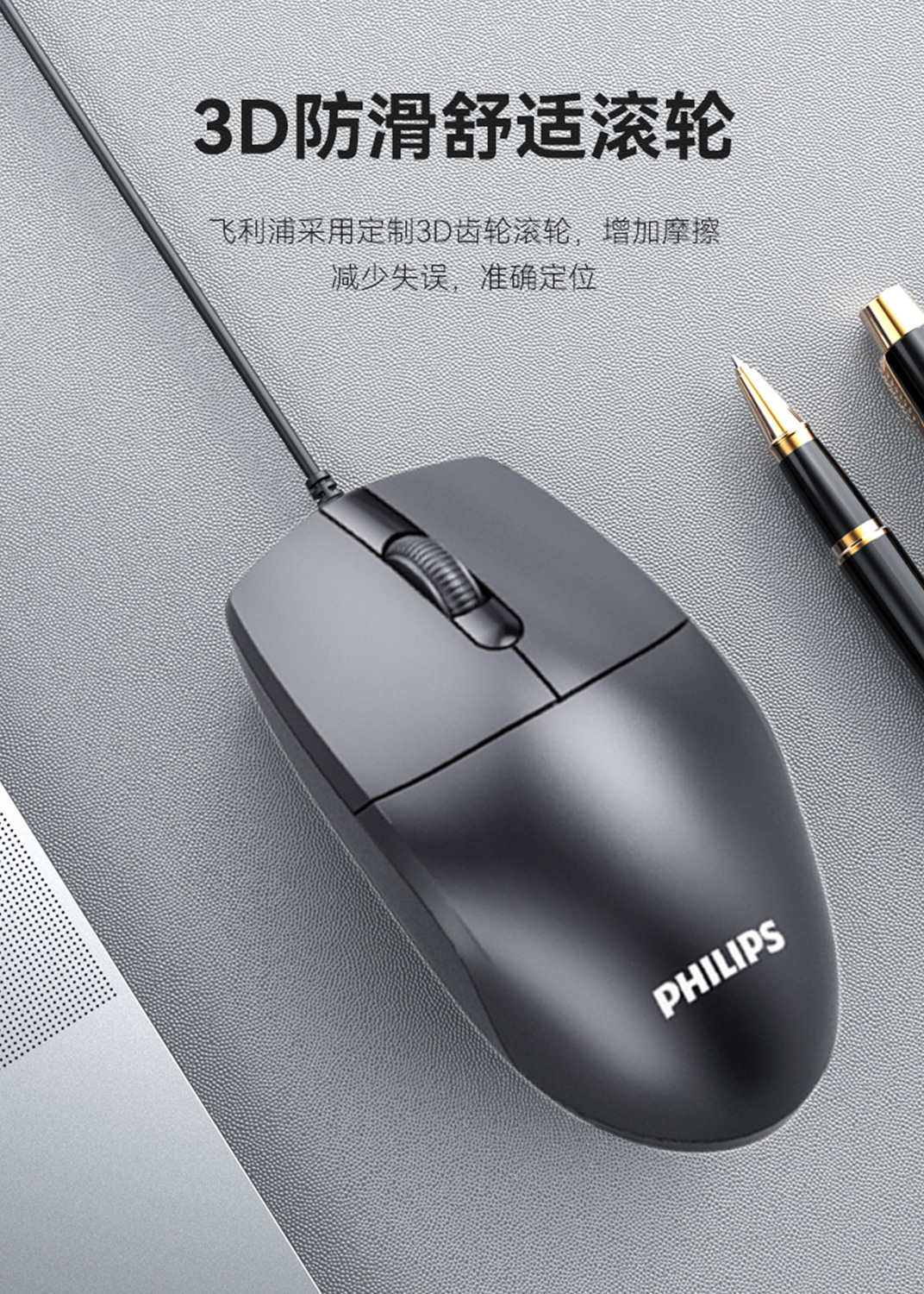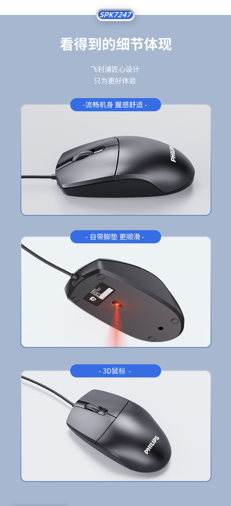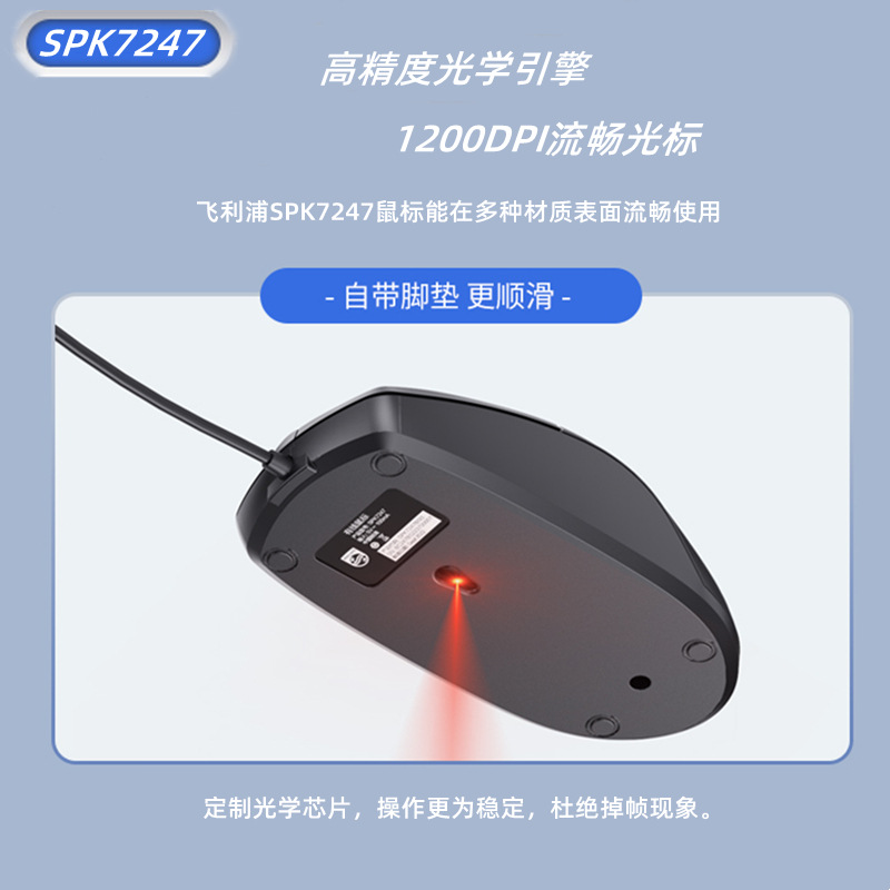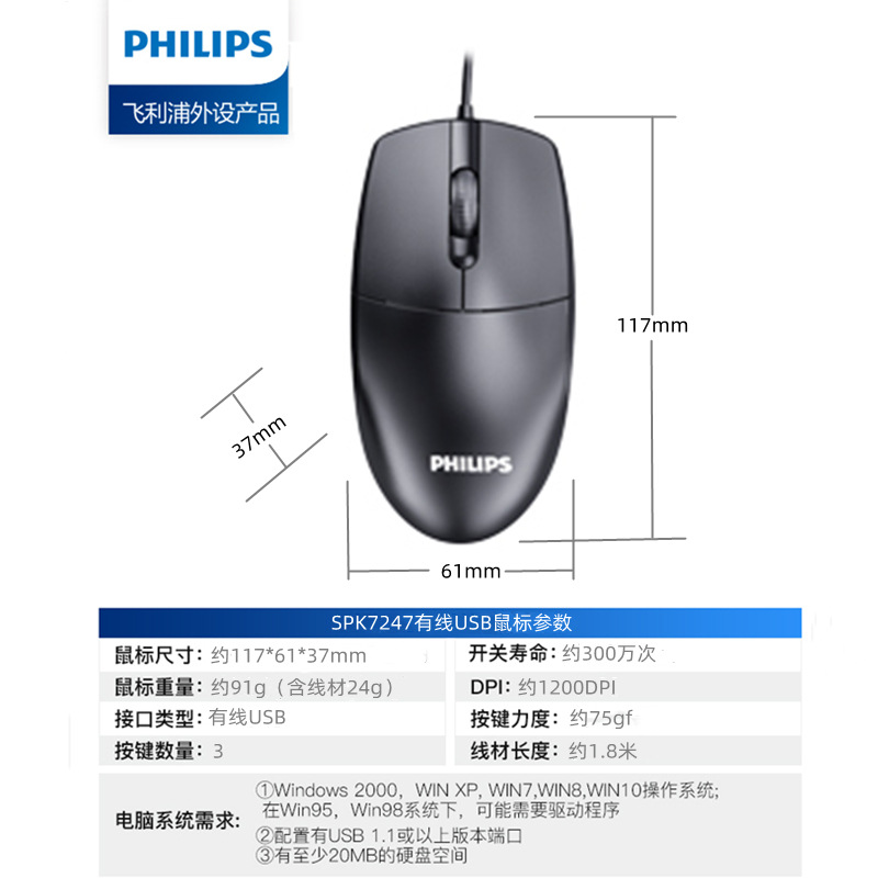 Philips飞利浦SPK7247有线USB鼠标家用办公台式 笔记本无线鼠标