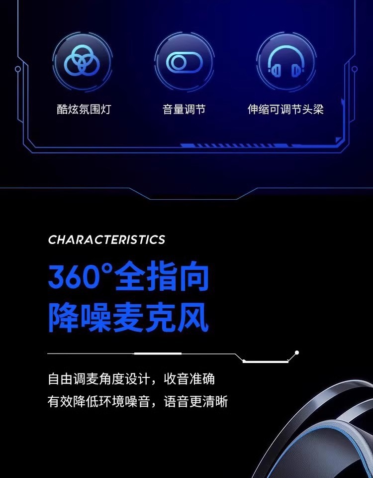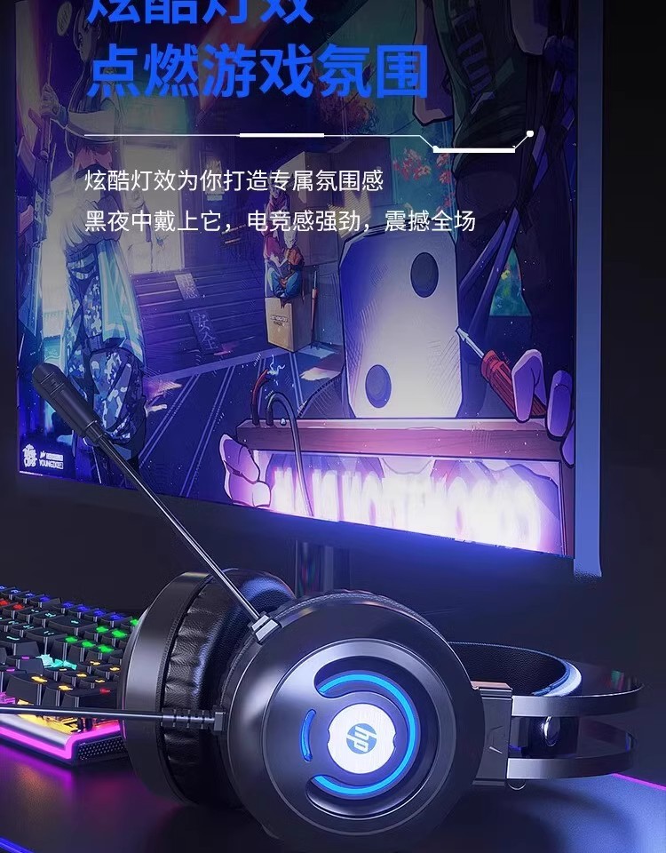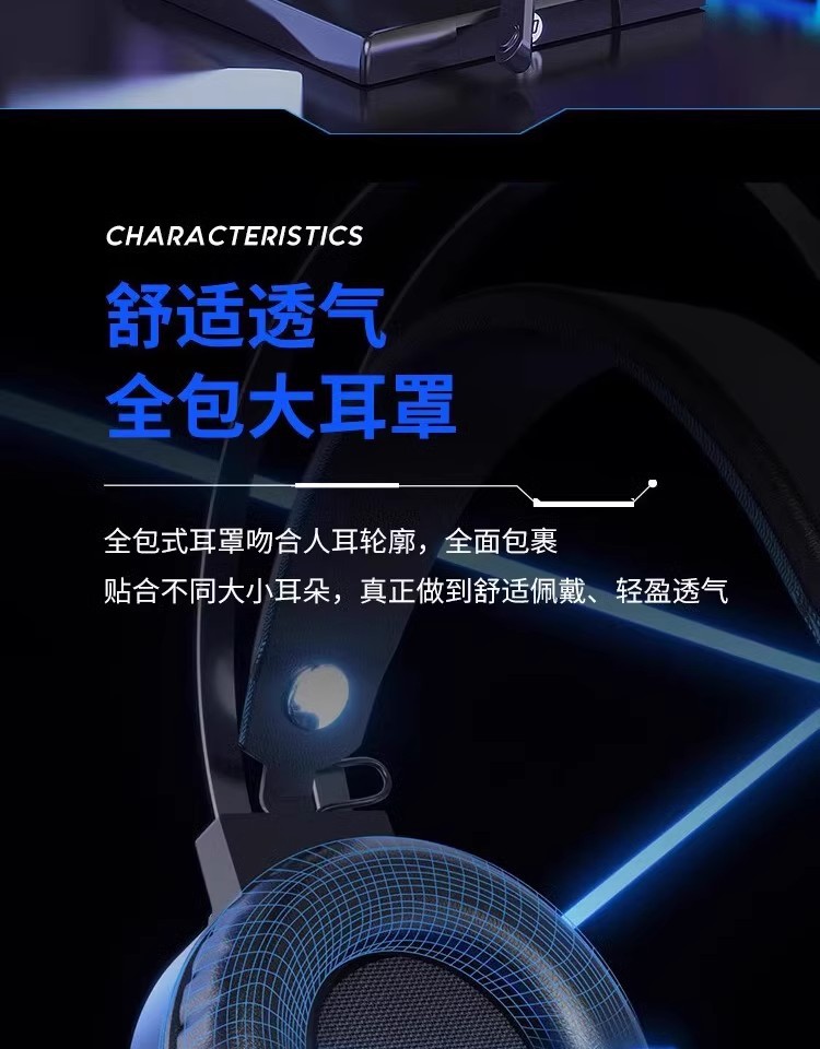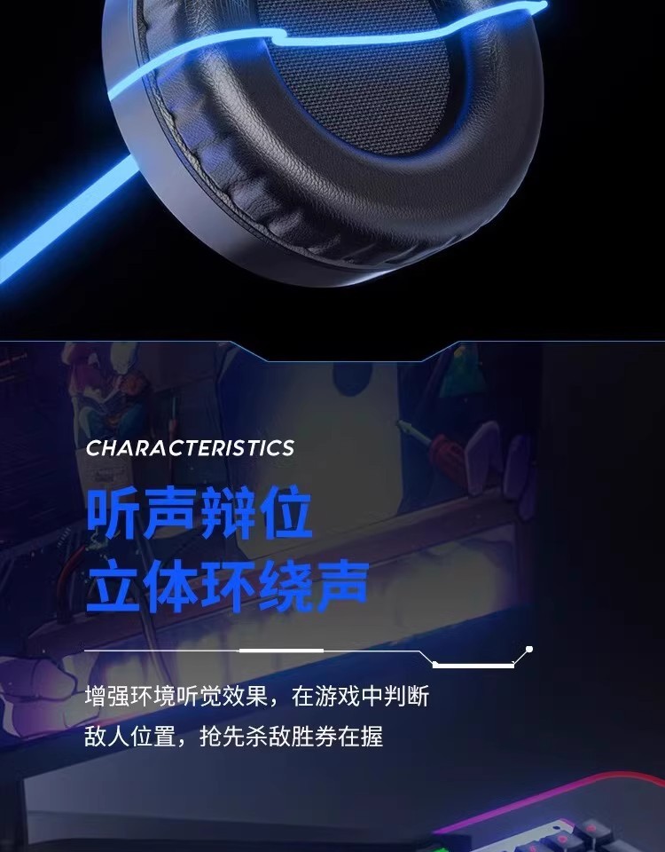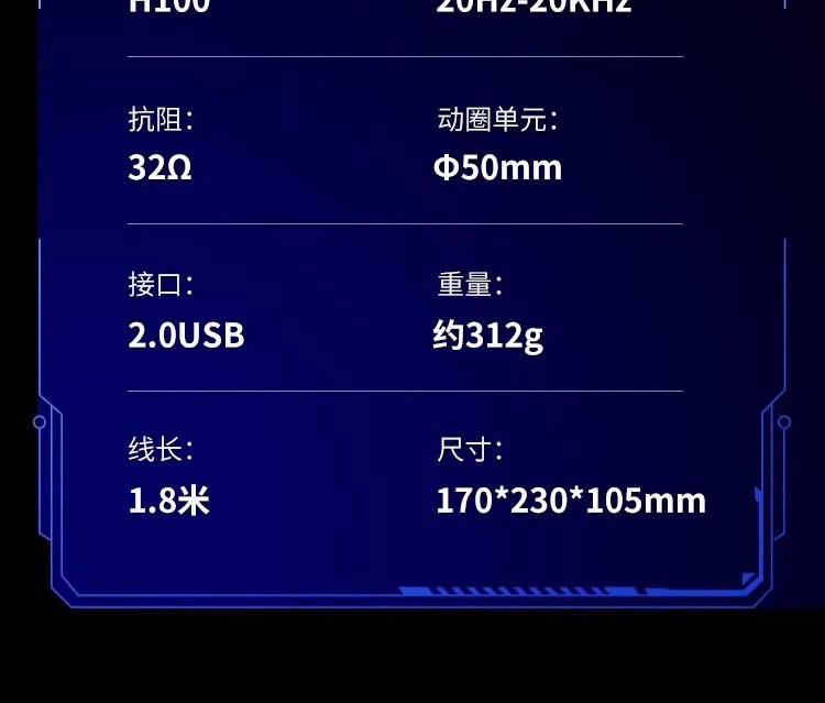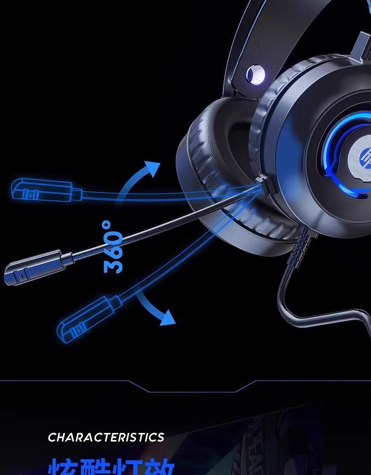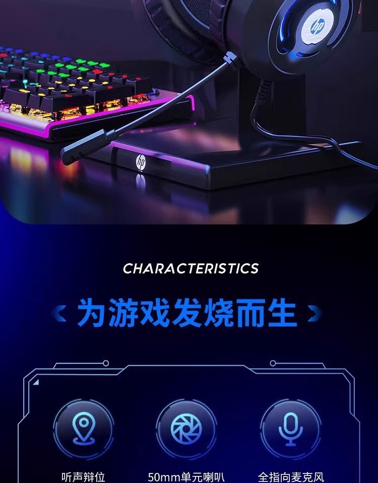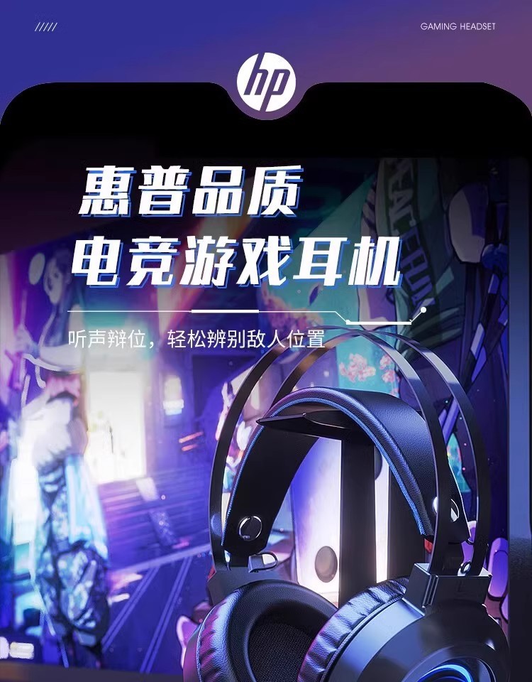 惠普H100有线游戏电竞发光头戴式耳机耳麦USB笔记本台式电脑7.1