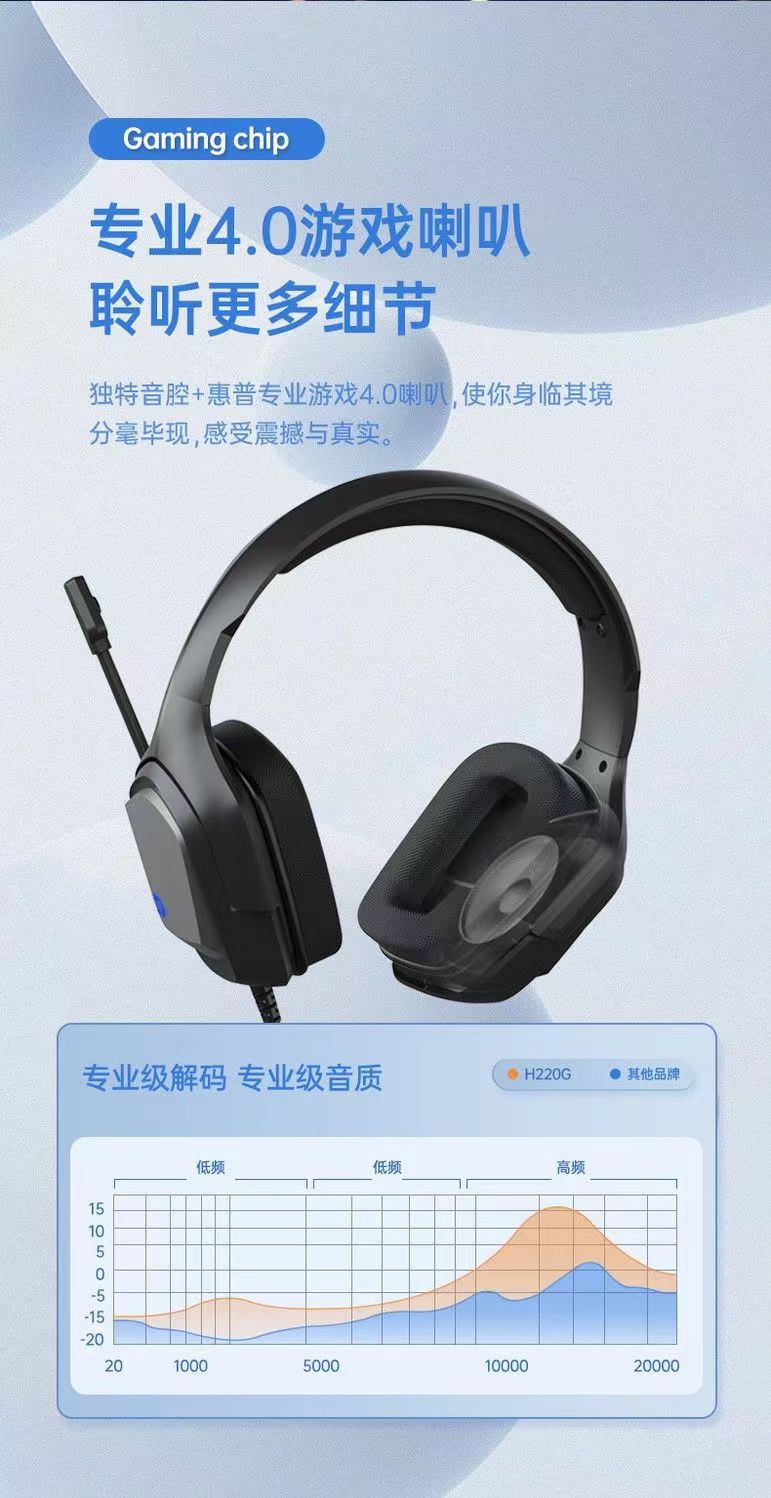 HP惠普H220头戴式耳机电脑游戏电竞耳机吃鸡听声辨位USB适用于