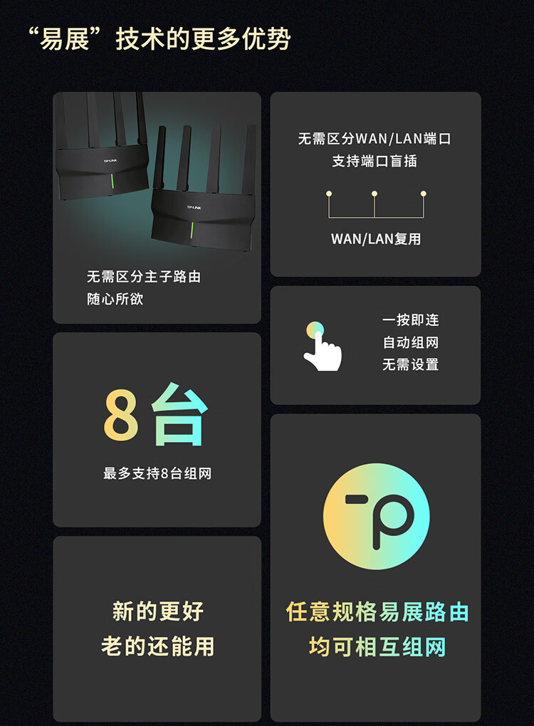 TPLINK千兆端口AX3000无线MESH家用高速WIFI6路由器XDR5410易展版