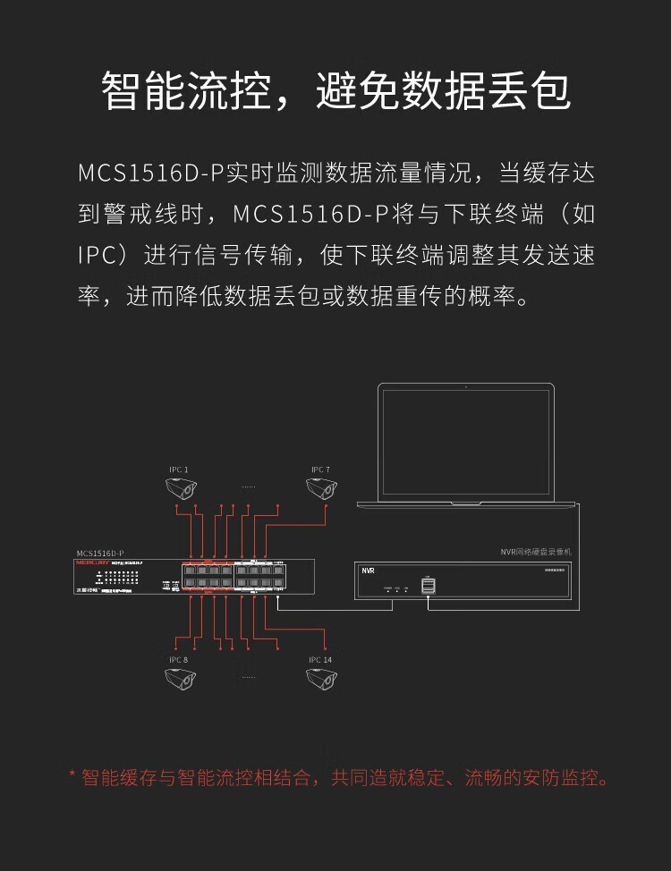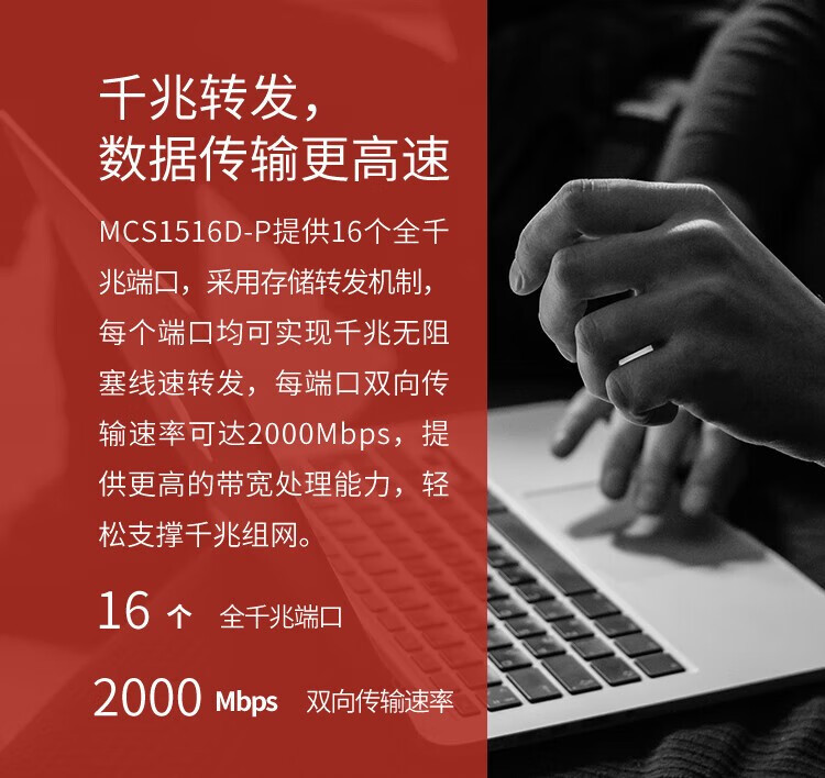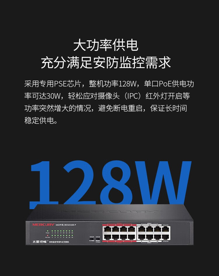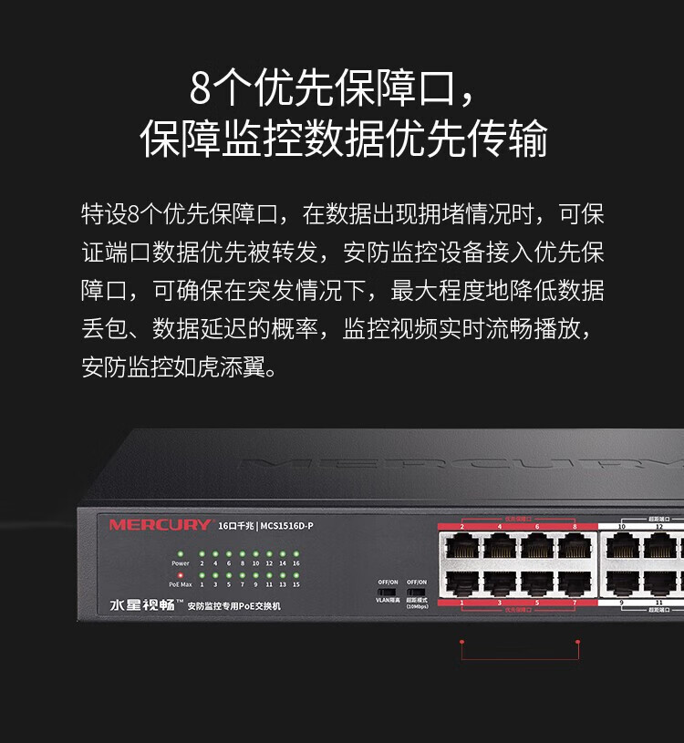 MERCURY水星MCS1516D-P千兆16口安防监控专用PoE交换机VLAN上机架