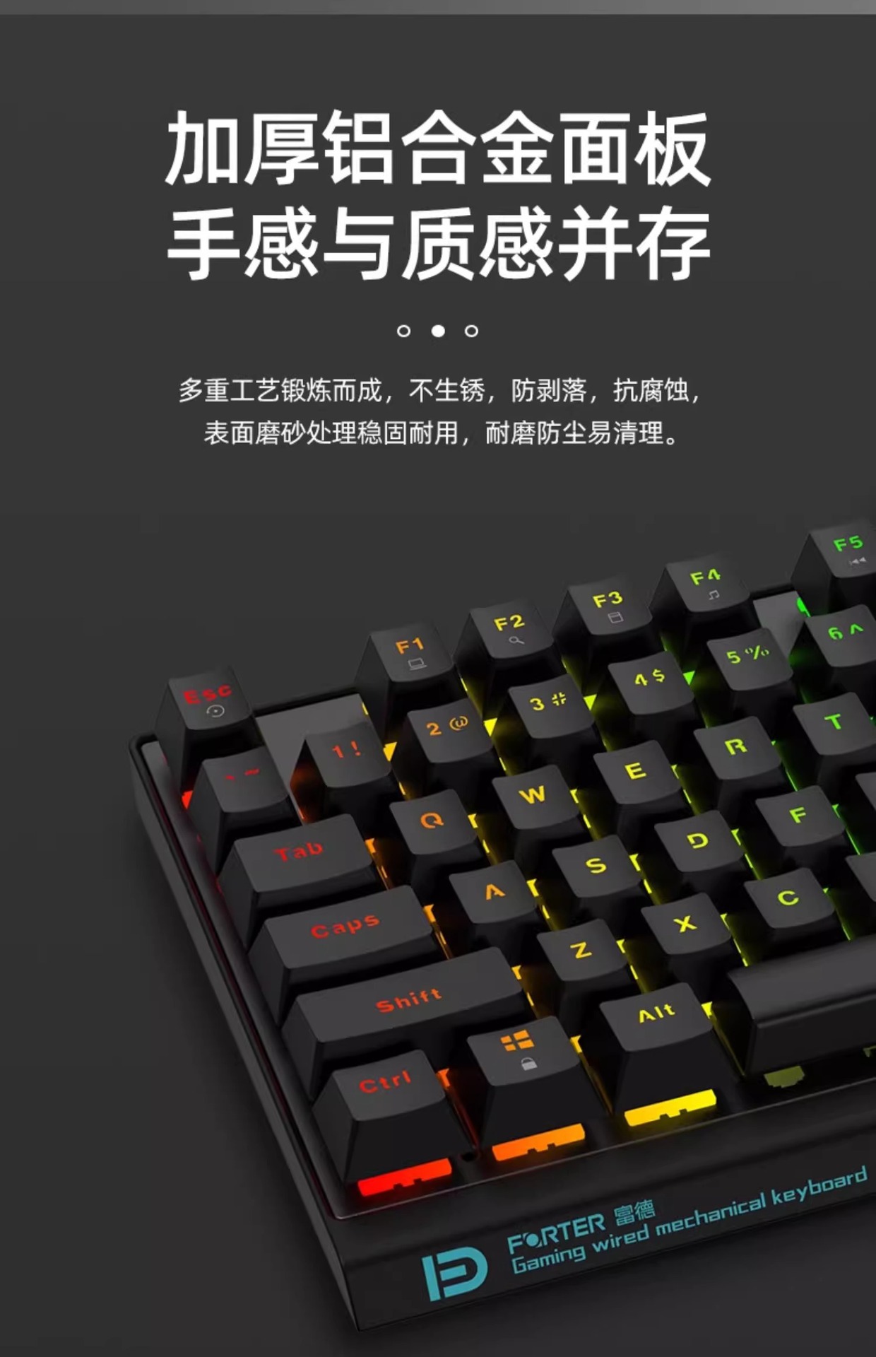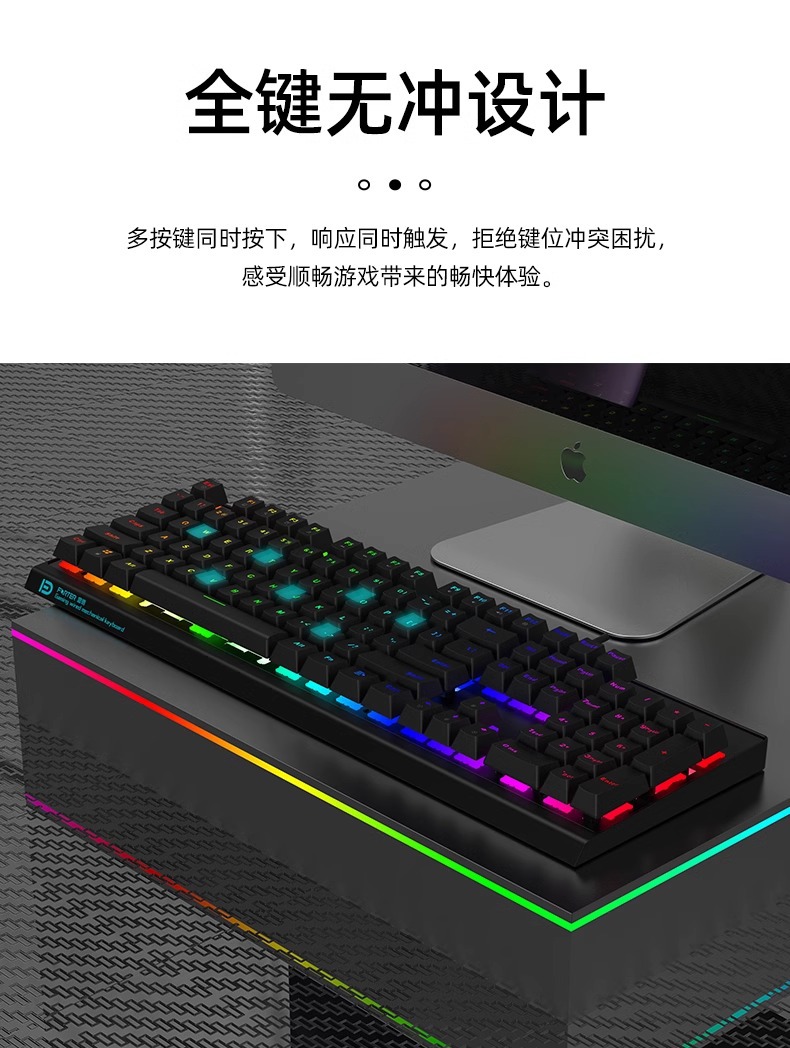 富德机械键盘有线104键USB黑轴青轴外接电竞游戏台式电脑有线办公