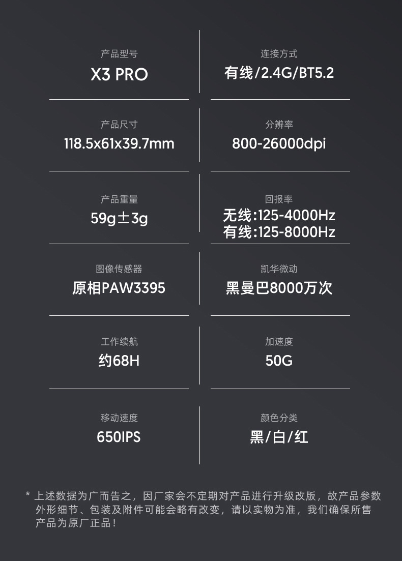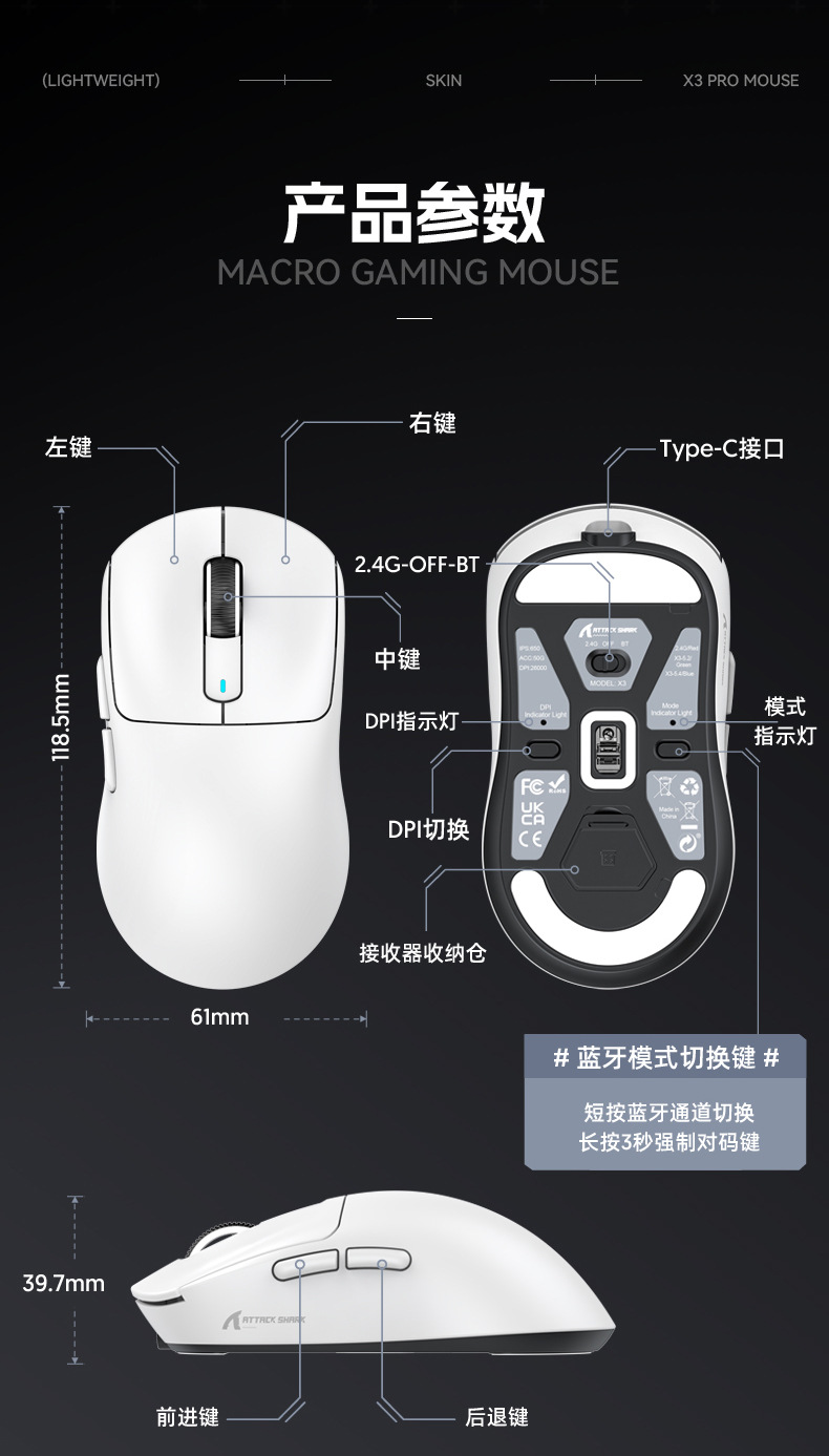 现货Attack Shark/攻击鲨X3pro三模无线鼠标PAW3395 4K 8